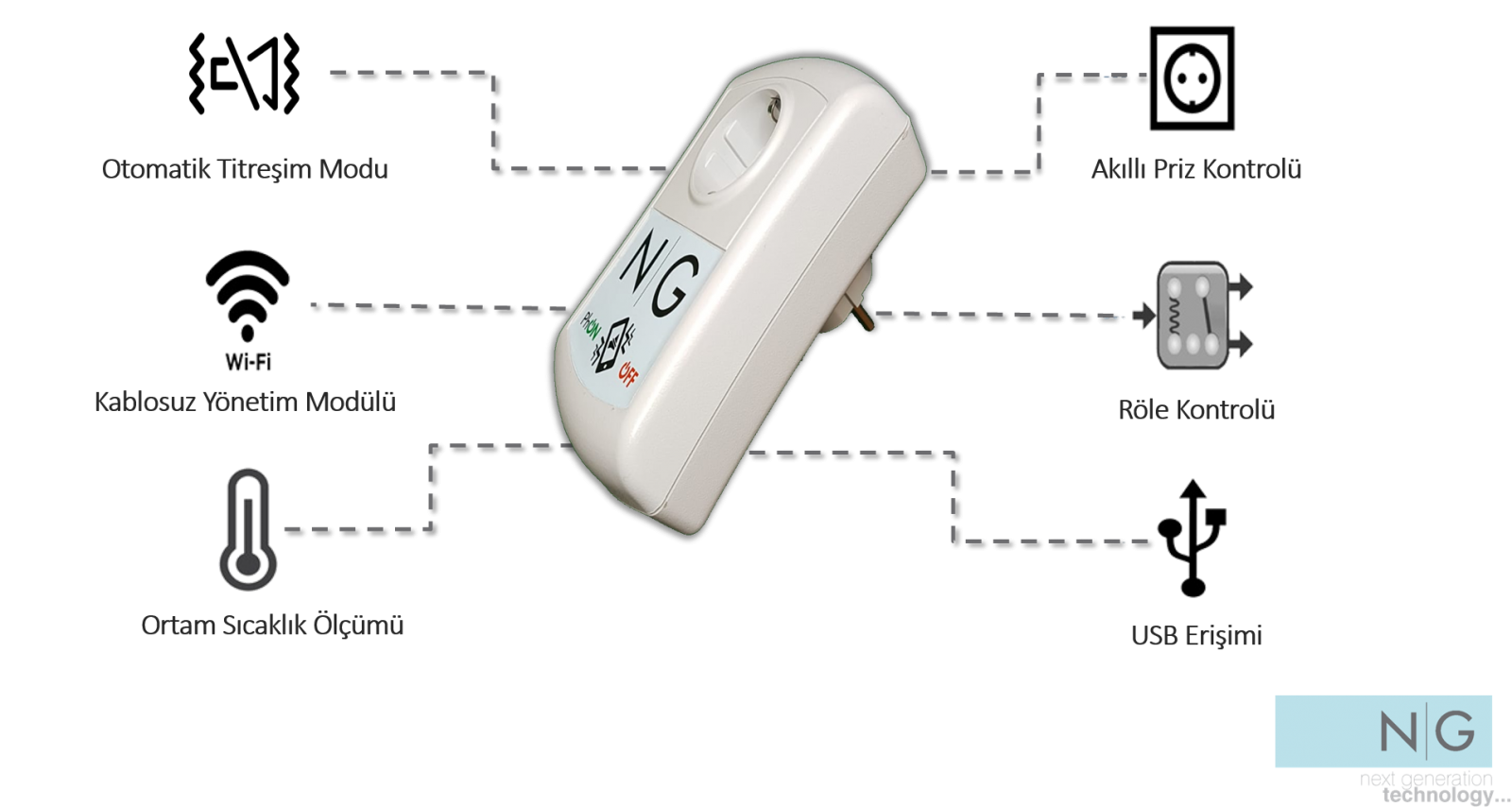 Kullanıldığı prizi akıllı priz haline getirir. Prizde kullanılan (ısıtıcı, klima, havalandırma, ses, aydınlatma vb.) cihazlar için otomatik veya zamanlanmış açma – kapatma planlayabilir.