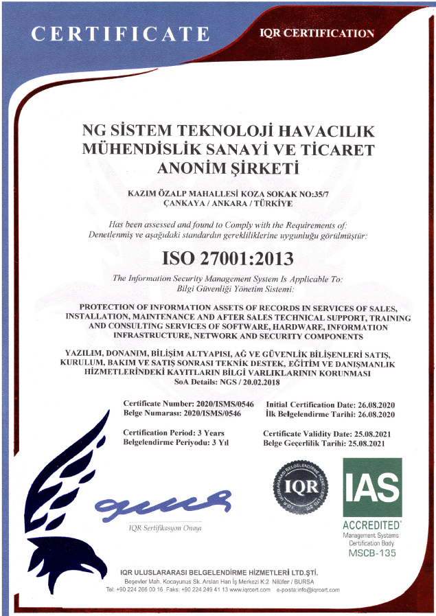 Tüm Hakları Saklıdır © 2015 NG Sistem Teknoloji Havacılık Mühendislik SAN. ve TİC. A.Ş.